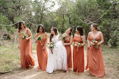 Harvey and Kylie went to the same high school but ended up "meeting" on Twitter in 2011. What started out as friendly tweets about bands they liked quickly turned into texting for hours and then spending every moment they could together. Nine years later, she unknowingly helped put together the night he would propose! She had wanted to have her family out to the Karbach Ranch for dinner and to show them around for a while and they were finally able to find a date that worked for his and her parents. As they pulled onto the ranch road she saw their family's and best friends standing there, each holding a purple rose, and she immediately knew what was happening. Harvey got Kylie out of the car, got down on one knee, and asked her to spend forever with him!
